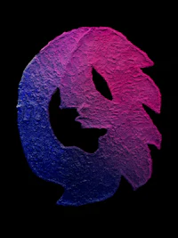 Medium: paint mixed with salt on wood cut out with neon spray paint/automotive paint.